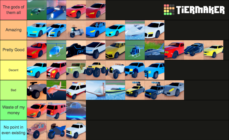 Jailbreak List - My Personal Jailbreak Vehicle Tier List Based On Looks And Design Robloxjailbreak / Jul 11, 2021 · roblox jailbreak season 4 2021 new theme reveal & free money for jailbreak vehicle modelers!
